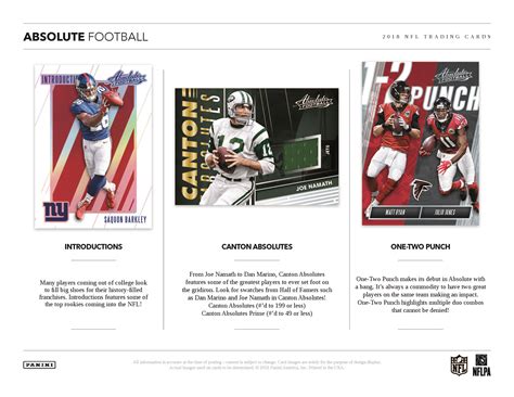 Alright, let’s get into the nitty-gritty of the 2018 Absolute Football card set . Released by Panini, this set immediately grabbed the attention of collectors due to its distinct design and the chance to pull some seriously cool cards. One of the main draws was the inclusion of some of the top rookies from the 2018 NFL Draft class. This immediately made it a must-have for those looking to snag some future superstars. Remember, guys, rookie cards are always a hot commodity! The set features a wide variety of card types, from base cards to premium inserts and autograph cards, catering to different collecting preferences. The cards have a visually appealing design, with a focus on photography and a clean layout, making them stand out in any collection. Plus, they were produced in limited quantities, which adds to their allure and value. The fact that the 2018 Absolute Football cards featured rookies like Baker Mayfield, Saquon Barkley, and Josh Allen made the set incredibly attractive from the start. These players quickly became household names, and their rookie cards from this set became highly prized.