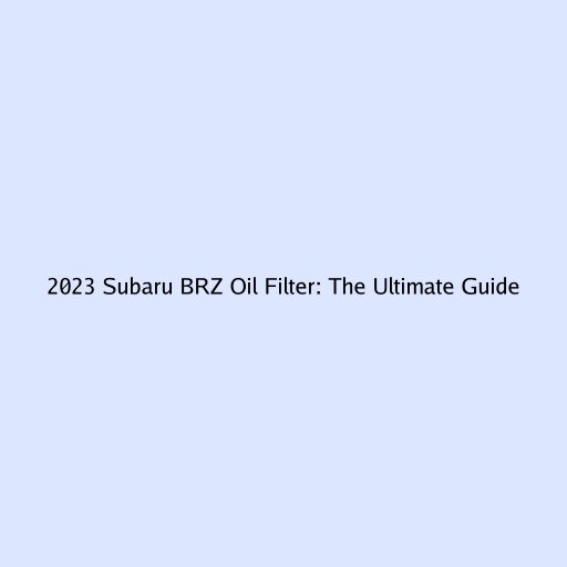 2023 Subaru BRZ Oil Filter: The Ultimate Guide
