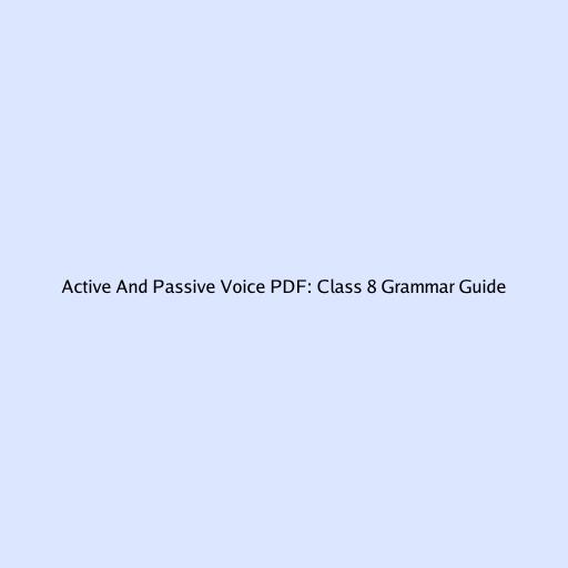 Hey guys! Understanding active and passive voice is super important for acing your Class 8 grammar. It’s not just about memorizing rules, but about understanding how sentences are structured and how to make your writing more effective. So, let’s dive into what active and passive voice are, why they matter, and how you can master them with a handy PDF guide. This guide will provide a comprehensive explanation, examples, and exercises tailored for Class 8 students.
