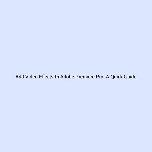 Add Video Effects In Adobe Premiere Pro: A Quick Guide