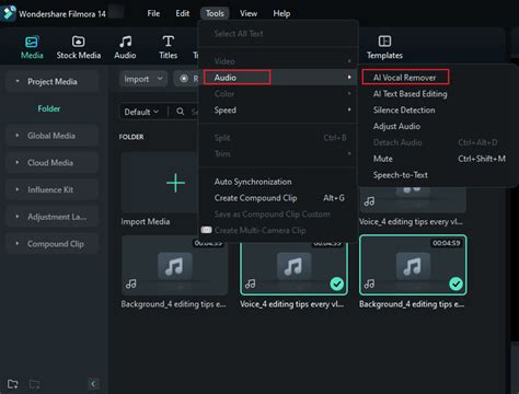 Also, remember that no AI is perfect. Sometimes, the vocal removal might not be flawless, especially with complex tracks that have a lot of overlapping frequencies. In these cases, you might need to do some manual editing to clean up any artifacts or remaining vocal remnants. Filmora provides a range of manual audio editing tools that can help you with this, such as the audio mixer, the equalizer, and various audio effects. By combining the AI vocal remover with these manual tools, you can achieve a truly professional-sounding result. Additionally, consider the type of music you’re working with. The AI tends to perform better with tracks that have clear separation between the vocals and the instruments. If the vocals are heavily processed or mixed with a lot of reverb and effects, it might be more challenging for the AI to isolate them cleanly. In such cases, you might need to experiment with different settings or try using alternative vocal removal techniques. Furthermore, take advantage of Filmora’s preview function to listen to your edits in real-time. This allows you to quickly identify any issues and make adjustments as needed. By carefully listening to your audio and paying attention to detail, you can ensure that your final product sounds polished and professional. Don’t be afraid to experiment and try different approaches until you achieve the desired result.