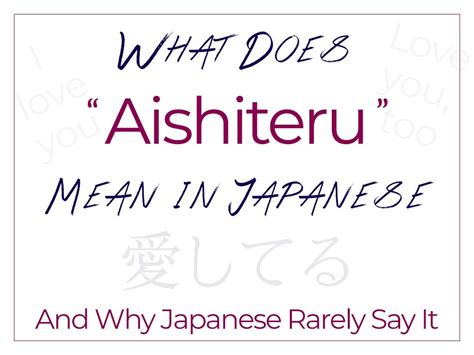 Now that we know Aishiteru hails from Japan, let’s really dig into what makes this particular phrase so special. The deep meaning of ‘Aishiteru’ goes far beyond a simple “I love you.” In Western cultures, “I love you” can be quite versatile – you might say it to your partner, your parents, your best friend, or even to a really good slice of pizza (okay, maybe not the last one, but you get the idea!). However, in Japan, Aishiteru carries a weight that is almost sacred. It’s not a phrase used lightly or casually. Think of it this way: if “I love you” is a gentle spring rain, Aishiteru is a powerful, life-altering monsoon. It typically refers to a profound, unconditional, and enduring love, most commonly exchanged between spouses, engaged couples, or parents and children in moments of extreme emotional significance. This isn’t the kind of love you declare after a few dates; it’s the kind of love that has been tested by time , nurtured through shared experiences, and implies a lifelong commitment. The emphasis is on deep affection that is not just a feeling, but a fundamental part of one’s being and connection to another person. It’s about a bond that goes beyond mere affection or liking; it’s about a complete devotion. Japanese culture often emphasizes actions over words, and direct emotional expression can sometimes be seen as unnecessarily blunt or even embarrassing. This cultural inclination towards indirect communication further elevates the significance of Aishiteru . When it is spoken, it means someone is truly, deeply baring their soul. It means that the speaker has overcome a significant cultural barrier to express an emotion so intense, so profound, that it must be said. It implies a sense of responsibility and a deep connection that isn’t easily broken. You won’t hear Japanese people saying Aishiteru to their friends, or even to distant family members. It’s usually reserved for the most intimate relationships, where the depth of feeling is unequivocal and often reciprocated with the same gravity. It conveys a commitment that isn’t just about romantic feelings, but about a lasting bond of affection and care . The profoundness of its meaning makes it less of a daily utterance and more of a grand declaration, a significant milestone in a relationship. Seriously, guys, when you hear or use this word, know that you’re tapping into the very core of what love means in Japanese culture – a deep, unwavering, and truly precious emotion. It’s a word that truly resonates with the concept of true love, signifying something that is both beautiful and everlasting, a testament to enduring human connection.