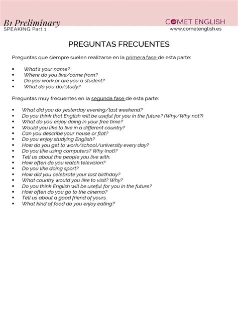 B1 Preliminary Speaking: Ace Part 1 Questions