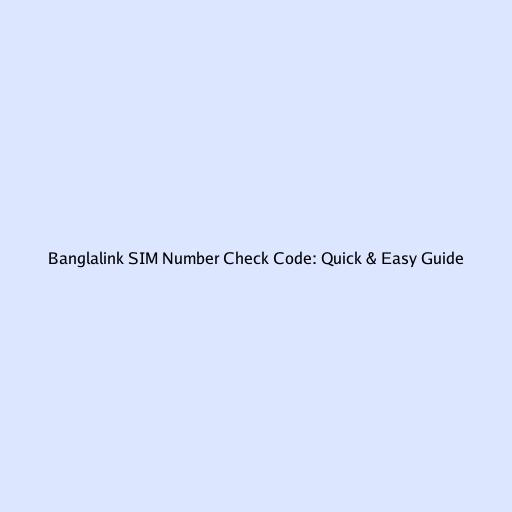 Banglalink SIM Number Check Code: Quick & Easy Guide