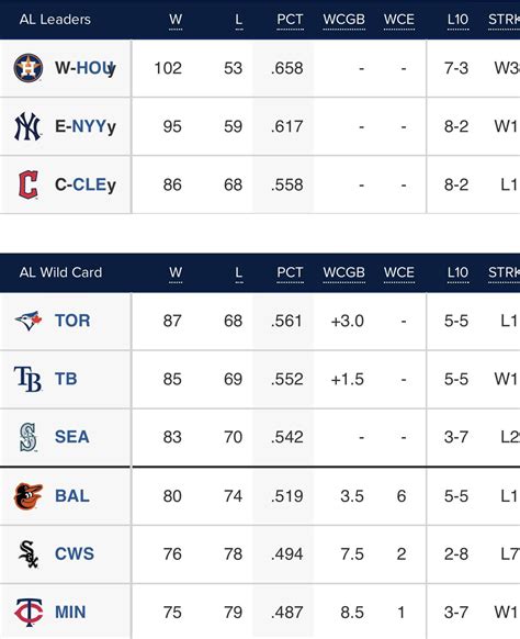 Alright, let’s break down the Blue Jays standings . Understanding the standings is crucial for any dedicated fan. The standings show the team’s current position within its division and the league. They’re like a snapshot of where the Blue Jays stand in the grand scheme of things. How do you read the standings? You’ll typically see a table with several columns. The most important columns are wins (W), losses (L), and the win percentage (PCT). The win percentage is calculated by dividing the number of wins by the total number of games played. This number gives you a quick and easy way to compare the performance of different teams. Also, you’ll see games back (GB). This number tells you how many games the Blue Jays are behind the team that’s in first place in their division. If the Blue Jays are in first place, the games back will be zero. You’ll also see the division standings. The Blue Jays are in the American League East, so they’ll be competing with teams like the New York Yankees, the Boston Red Sox, and the Tampa Bay Rays, among others. The division standings are super important because they determine who makes it to the playoffs. A high position in your division is a direct route to the postseason. The league standings provide a broader view. They show how the Blue Jays stack up against all the teams in the American League. This helps you understand how competitive the team is overall. The standings are constantly changing throughout the season. As the Blue Jays play more games, their win-loss record, win percentage, and position in the standings will fluctuate. Keeping an eye on these changes is a good idea. The standings are like a living document that tells the story of the team’s performance over time. A good spot in the standings means the Blue Jays are winning games and heading towards the playoffs. It gives you something to get excited about as a fan.