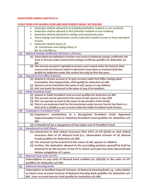 Hey guys! Let’s dive into the world of Chapter VI-A deductions. Understanding these deductions can significantly reduce your tax burden. We’re going to break down everything you need to know in a super easy-to-understand way. This guide will cover what Chapter VI-A is, the various sections it includes, and how you can make the most of these tax-saving opportunities. By the end of this article, you’ll be well-equipped to handle your tax planning like a pro. So, grab a cup of coffee, and let’s get started!
