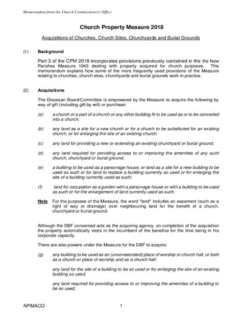Before 2018, the procedures for property transactions might not have been as clear or consistent across different dioceses. This measure aimed to standardize these processes, making everything more transparent and easier to understand. This is a game changer. The Church’s property portfolio is pretty extensive, and this measure helps ensure that it’s managed in a way that’s fair, compliant with the law, and ultimately benefits the community. It’s about accountability, efficiency, and making sure that the Church can continue to serve its members for years to come. That’s why the Church developed this measure in the first place.