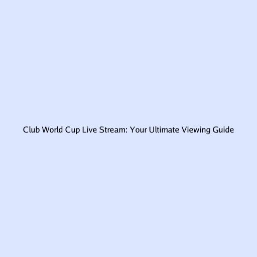 Club World Cup Live Stream: Your Ultimate Viewing Guide