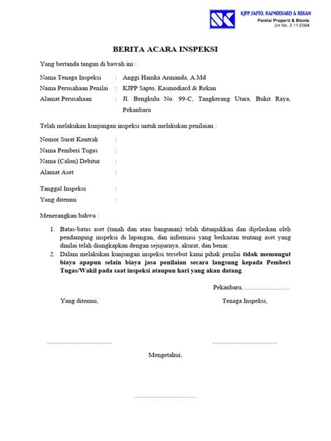 Contoh Berita Acara Inspeksi Material