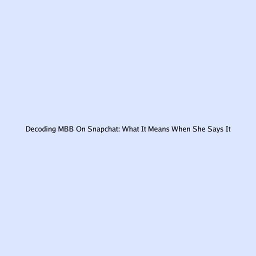 Decoding MBB on Snapchat: What It Means When She Says It