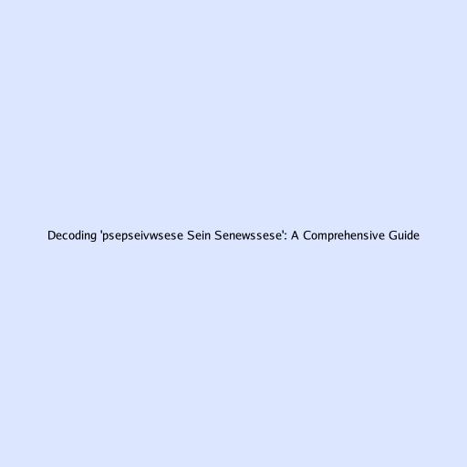 Decoding ‘psepseivwsese sein senewssese’: A Comprehensive Guide