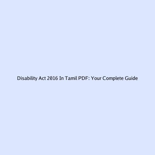 Disability Act 2016 In Tamil PDF: Your Complete Guide