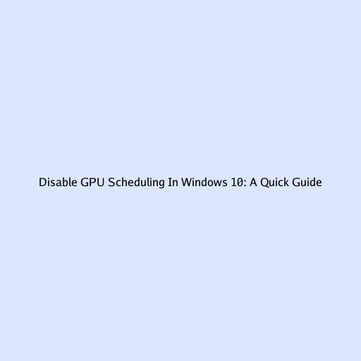 Disable GPU Scheduling in Windows 10: A Quick Guide