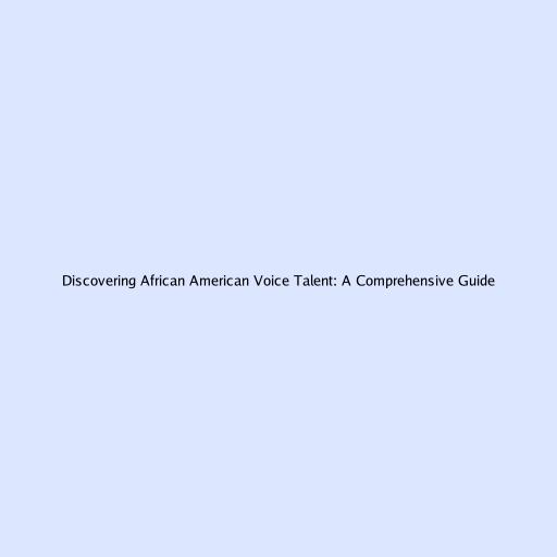 Discovering African American Voice Talent: A Comprehensive Guide