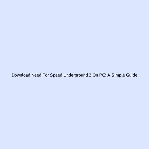 Download Need for Speed Underground 2 on PC: A Simple Guide