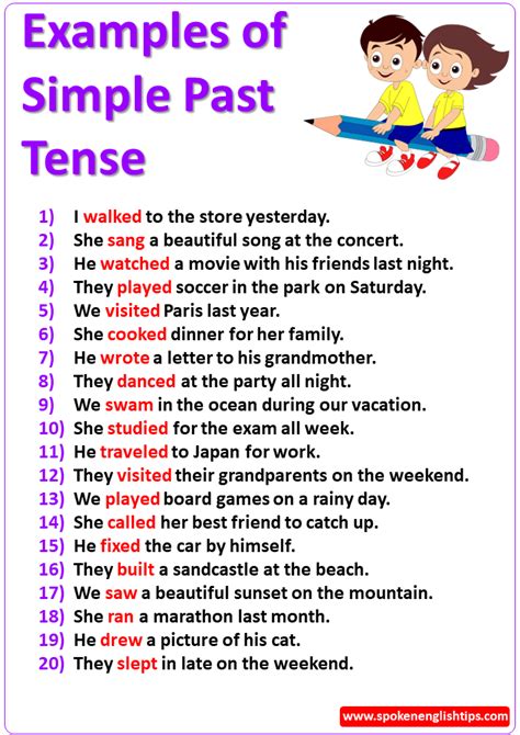 When telling a story or describing a series of past events, it’s crucial to maintain consistency in your tenses. If you start a story in the past tense, make sure to continue using “ate” and other past tense verbs throughout. Switching back and forth between present and past tenses can confuse your listeners or readers.