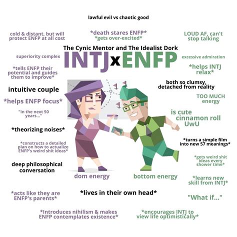 What makes ENFP flirting with INTJ so incredibly unique and often so successful? It’s the ‘opposites attract’ phenomenon dialed up to eleven! The INTJ brings a sense of calm, logic, and direction to the ENFP’s often whirlwind existence. They can help the ENFP organize their brilliant ideas and channel their energy effectively. Think of the INTJ as the sturdy anchor to the ENFP’s vibrant kite, keeping them grounded while allowing them to soar. On the other hand, the ENFP brings warmth, emotional depth, and a touch of delightful chaos to the INTJ’s structured world. They encourage the INTJ to step outside their intellectual comfort zone, to embrace passion, and to see the world through a more colorful lens. The ENFP reminds the INTJ that life isn’t just about achieving goals; it’s also about enjoying the journey and connecting with others on a deeper level. This synergy is incredibly powerful. The INTJ provides a stable framework, and the ENFP fills it with life, color, and emotional richness. It’s a partnership that fosters incredible personal growth for both individuals. The INTJ learns to be more in touch with their emotions and develop stronger interpersonal skills, while the ENFP learns to be more grounded, focused, and disciplined. They push each other to be better versions of themselves in ways that other pairings might not. The intellectual sparring between an ENFP and an INTJ can be electrifying. They challenge each other’s thinking, leading to new insights and deeper understanding. The ENFP’s creativity combined with the INTJ’s strategic mind can lead to innovative solutions and ambitious projects. It’s a dynamic where intellect meets intuition, and logic meets emotion, creating a compelling and often unbreakable bond. This pairing often leads to a profound appreciation for each other’s unique strengths. The INTJ admires the ENFP’s courage and passion, while the ENFP is captivated by the INTJ’s brilliance and unwavering determination. It’s a relationship built on mutual respect and fascination, where the quirks and differences are not just tolerated but celebrated. It’s a testament to the idea that sometimes, the most unlikely combinations create the most beautiful and enduring connections, proving that love can indeed conquer all, even the seemingly vast divide between a feeling, intuitive dreamer and a thinking, judging strategist. It’s a magical blend of fire and ice, passion and precision, a dance that, when mastered, can lead to a truly extraordinary partnership.