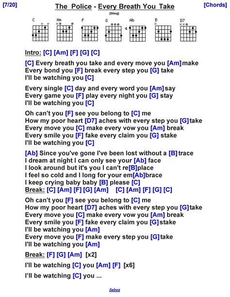 Hey guitar enthusiasts! Ever wanted to strum along to that iconic The Police hit, “ Every Breath You Take ”? Well, you’re in luck, guys! This song is a fantastic choice for intermediate players and even ambitious beginners looking to expand their repertoire. We’re going to break down the every breath you take chords in a way that’s super easy to follow, making sure you can nail that melancholic yet catchy tune in no time. So grab your guitar, tune it up, and let’s dive into the chords that make this classic song so unforgettable. It’s more than just a song; it’s a vibe, and mastering its chords will definitely elevate your guitar game. Get ready to impress your friends or just enjoy playing one of the most recognizable melodies from the 80s.