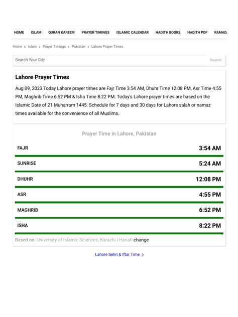 Another great option is to check Islamic websites. There are numerous websites that provide prayer times for various cities around the world, including Lahore. Some reliable websites include the official websites of mosques, Islamic centers, or well-known Islamic organizations. When you visit these websites, you can usually enter your city or location, and the site will display the prayer times for the day. Make sure you’re using a trusted website to ensure accuracy. These sites typically use astronomical calculations to determine prayer times, ensuring that the information provided is based on correct data. Many Islamic websites also offer useful features, such as the ability to download prayer time calendars, access to religious articles, and community forums. Checking the prayer times online is particularly helpful if you do not have a smartphone. By frequently visiting these websites, you can easily plan your day around prayer times, keeping you connected with your religious obligations. Therefore, checking Islamic websites is a convenient way to find the Fajr prayer time in Lahore .