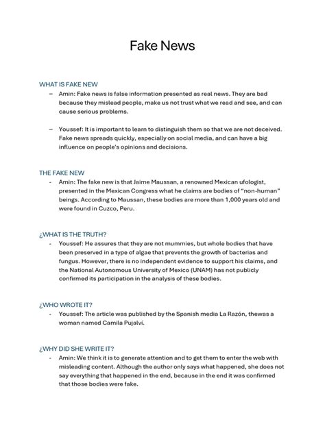 By sharing and discussing their fake news scripts , students can raise awareness among their peers about the dangers of misinformation and promote media literacy within their communities. Ultimately, this exercise empowers students to become more informed, discerning consumers of information and responsible contributors to the digital landscape.
