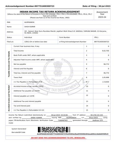 • Step 7: Submit your return: Once you’ve verified your return, submit it to the Income Tax Department. You’ll receive an acknowledgment receipt, which is proof that you’ve filed your return. Download and save this receipt for your records.
