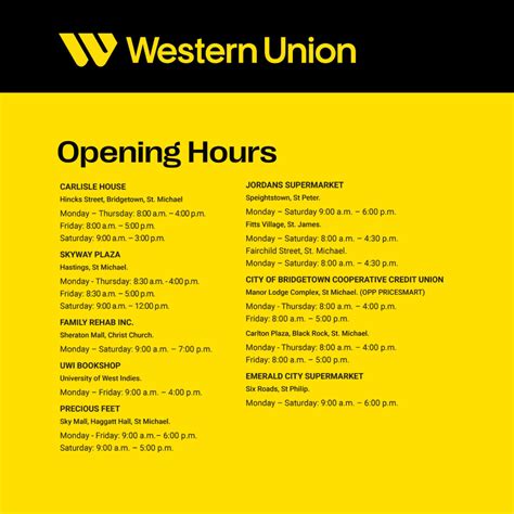 • Checking Store Directories: Western Union often partners with other retailers, such as grocery stores, pharmacies, and convenience stores. Check the directories on the websites of these stores to find out if they host a Western Union service. Call ahead to confirm the hours.