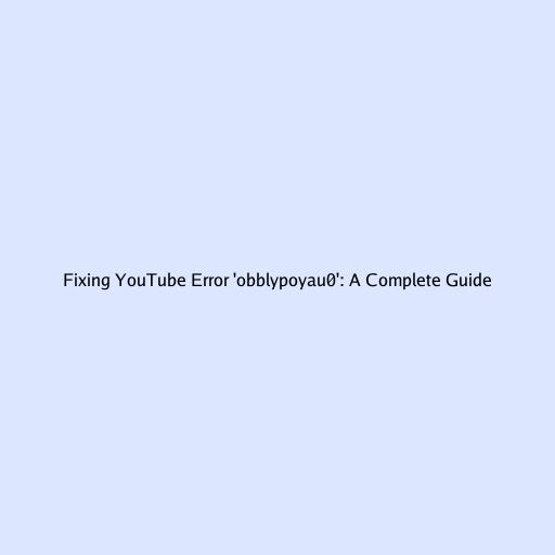 Fixing YouTube Error 'obblypoyau0': A Complete Guide