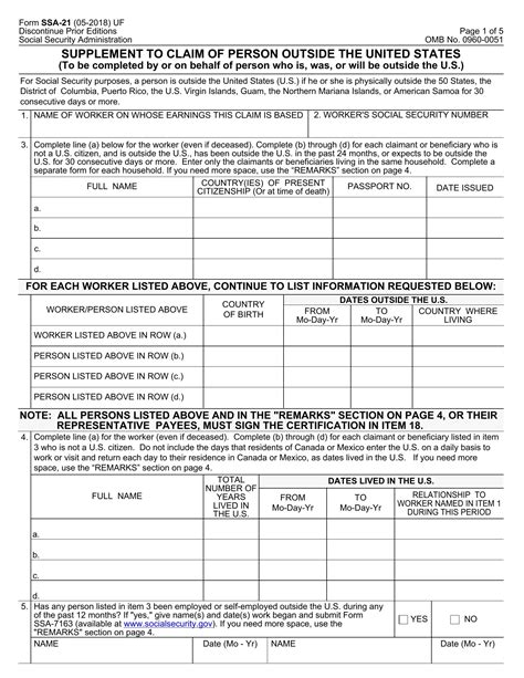Let’s break down the main scenarios where you’ll encounter Form SSA-21 . First off, if you’re a U.S. citizen or national who’s decided to retire to sunny Spain, or you’re a long-term expat working in bustling Berlin, and you’re applying for your Social Security retirement benefits , you’ll need to submit this form alongside your main application. Similarly, if you’re claiming disability benefits and you’re living abroad, or if you’re a survivor (like a widow, widower, or child) of a deceased worker and you reside internationally, Form SSA-21 is your ticket to getting those payments processed correctly. It’s the SSA’s way of verifying your living situation and ensuring compliance with international payment regulations .