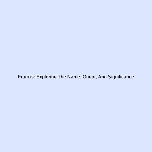 Francis: Exploring The Name, Origin, And Significance