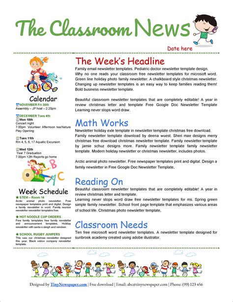 • Educational Resource Websites: Sites like Teachers Pay Teachers, Education.com, and others often have free or low-cost newsletter templates created by educators for educators. Many of these are available as school newsletter samples PDF .
