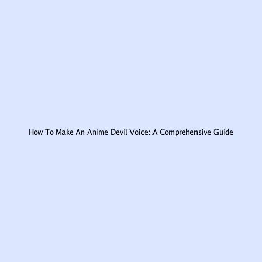 How To Make An Anime Devil Voice: A Comprehensive Guide
