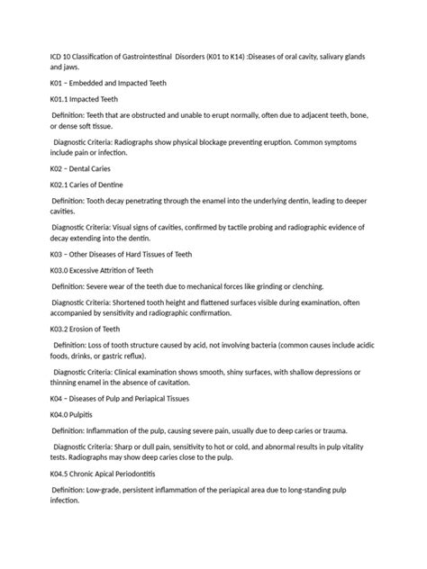 Alright, let’s get into the nitty-gritty of what ICD-10 code K00 actually covers. This classification is all about problems related to how teeth form and how they emerge (or don’t emerge!) from the gums. It’s a broad category that includes several specific conditions. For starters, we have congenital lack of teeth , which means a person is born without one or more teeth. This can range from a single missing tooth (hypodontia) to the complete absence of teeth (anodontia). On the flip side, there’s also the issue of supernumerary teeth , meaning having extra teeth beyond the normal set. These extra chompers can sometimes cause crowding or prevent other teeth from erupting properly. Then we get into problems with the size and form of teeth . Some folks might have abnormally small teeth (microdontia) or abnormally large teeth (macrodontia). Teeth can also be misshapen in various ways, like peg-shaped lateral incisors, which is quite common. Furthermore, ICD-10 K00 addresses anomalies in tooth structure . This refers to defects in the enamel or dentin, the hard tissues of the tooth. Think of conditions like enamel hypoplasia, where enamel formation is incomplete, making teeth more susceptible to decay, or dentinogenesis imperfecta, a genetic disorder affecting dentin formation. Lastly, the code covers disorders of eruption . This is when teeth don’t come through the gums at the expected time or in the expected way. It can include delayed eruption, impacted teeth (where a tooth is blocked and can’t erupt), or even teeth erupting in the wrong position. So, as you can see, ICD-10 K00 is a pretty comprehensive code that medical professionals use to document a wide array of developmental and eruption issues concerning teeth. It’s the foundational code for understanding why someone’s smile might not be developing as expected right from the start. Pretty fascinating stuff, right?