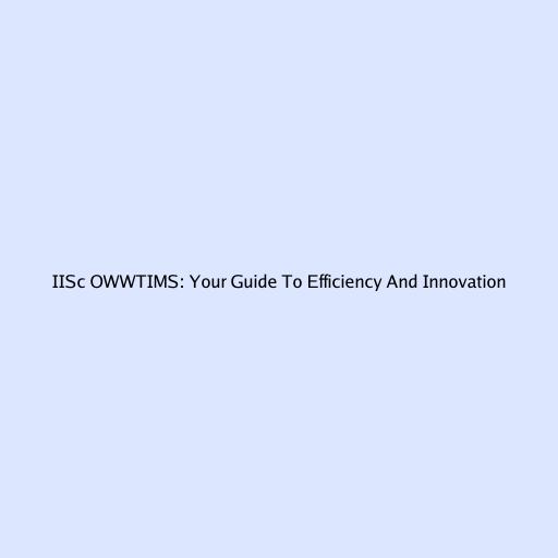 IISc OWWTIMS: Your Guide To Efficiency And Innovation