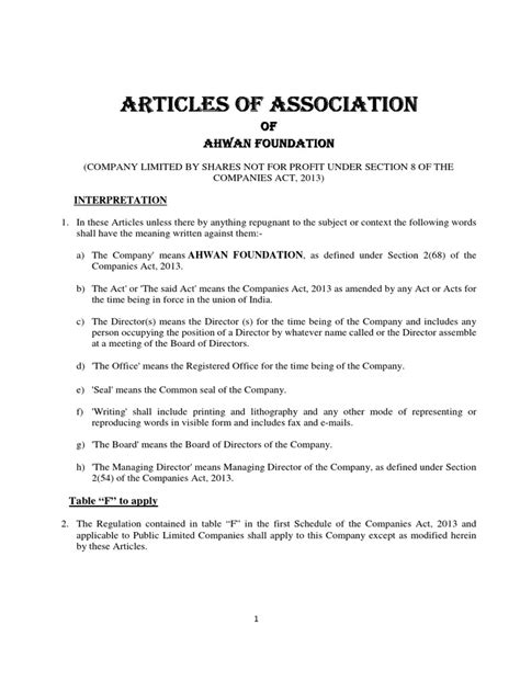 This section also often includes provisions on how the company name and domicile can be changed. While it’s a foundational element, the Articles of Association also anticipates the possibility of evolution. Any changes to the company name or its registered address must be formally approved, often through a shareholders’ resolution, and subsequently reported to the relevant authorities. This ensures that the company’s identity remains transparent and up-to-date. It’s about establishing a clear, unambiguous identity that can be easily recognized and verified by stakeholders, government agencies, and the public. The chosen name should reflect the company’s business nature and values, while the domicile establishes its legal roots. This foundational information is crucial for everything from opening bank accounts to obtaining permits and licenses. It’s the digital and physical storefront of your business in the eyes of the law. Without a properly registered name and domicile in your Articles of Association, your company lacks a fundamental legal footing.