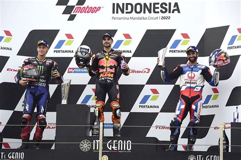 In 2022, Miguel Oliveira emerged victorious at the Indonesia GP, held at the Mandalika International Street Circuit. The race was particularly challenging due to heavy rain, which led to a delayed start and reduced race distance. Oliveira, riding for Red Bull KTM Factory Racing , showcased exceptional skill in the wet conditions. He managed to navigate the treacherous track with composure and precision, ultimately securing a dominant win. This victory was significant for Oliveira, marking a memorable achievement in his MotoGP career. His ability to adapt to the adverse weather conditions highlighted his talent and determination. The 2022 Indonesia GP was a testament to Oliveira’s capabilities as a top-tier rider, solidifying his reputation in the MotoGP paddock. Fans and analysts alike praised his performance, recognizing the strategic brilliance and technical mastery he displayed throughout the race. The win not only boosted his standing in the championship but also brought considerable acclaim to the KTM team, underscoring their competitiveness on the world stage. Oliveira’s success in Indonesia remains a highlight of the 2022 MotoGP season, remembered for the challenging conditions and his outstanding performance.