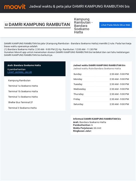 Untuk mendapatkan informasi jadwal yang paling akurat dan up-to-date untuk rute-rute spesifik yang kamu minati, sekali lagi, sangat disarankan untuk menggunakan aplikasi resmi Damri atau menghubungi layanan pelanggan mereka . Informasi di lapangan atau di halte bisa jadi kurang spesifik atau tidak mencakup perubahan mendadak. Dengan informasi yang tepat, perjalananmu dengan Bus Damri pasti akan lebih lancar dan menyenangkan! Selamat menjelajah!
