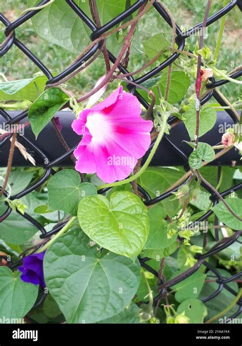 Ipomoea purpurea , widely known as common morning glory, is another cherished member of the Ipomoea family, captivating gardeners with its vibrant blooms and vigorous growth. Originating from Central America, this annual climbing vine has naturalized in many parts of the world, becoming a familiar sight in gardens and landscapes. Ipomoea purpurea is characterized by its heart-shaped leaves and trumpet-shaped flowers, which come in a variety of colors, including shades of purple, pink, blue, and white. The flowers typically open in the morning, attracting pollinators such as bees and hummingbirds, and close in the afternoon or on cloudy days. This species is known for its rapid growth and ability to quickly cover fences, walls, and trellises, adding a touch of vertical beauty to any outdoor space. Ipomoea purpurea is a relatively low-maintenance plant, thriving in full sun and well-drained soil. It readily self-seeds, meaning it can easily spread and naturalize in the garden. While this can be a desirable trait for some gardeners, others may find it necessary to control its growth to prevent it from becoming invasive. In addition to its ornamental value, Ipomoea purpurea has been used in traditional medicine for its purported medicinal properties. However, it is essential to exercise caution, as some parts of the plant may contain toxic compounds. With its vibrant flowers, vigorous growth, and ease of cultivation, Ipomoea purpurea remains a popular choice for gardeners seeking to add a splash of color and vertical interest to their landscapes. Its cheerful blooms and twining vines bring joy to gardens around the world.
