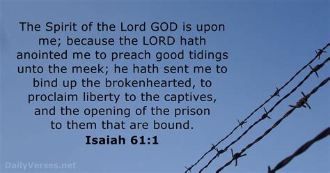 The Spirit of the Lord GOD is upon me; because the LORD hath anointed me to preach good tidings unto the meek; he hath sent me to bind up the brokenhearted, to proclaim liberty to the captives, and the opening of the prison to them that are bound. (Isaiah 61:1 KJV). Guys, right from the get-go, this verse sets the stage for something monumental. We’re talking about the very Spirit of God resting upon someone, an anointed one. And what is this anointed one sent to do? To bring good tidings to the meek. Think about that for a second. Good news! To those who are humble, those who aren’t proud or boastful. This isn’t just random news; it’s tidings meant to uplift, to encourage, to bring joy.