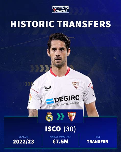 A key aspect of Isco’s Transfermarkt profile is his transfer history. This timeline details all the moves he has made throughout his professional career, from his early days at Valencia to his current club. Each transfer provides valuable context, shedding light on the decisions that shaped his career and the factors that influenced his moves. By examining this history, we can understand how his value has evolved over time and how different clubs have perceived his abilities. It also allows us to analyze the financial aspects of his transfers, including the fees paid and the wages he has commanded. This historical perspective is essential for understanding the overall trajectory of Isco’s career and his place in the modern football landscape. It’s like a roadmap, showing us the different paths he’s taken and the choices he’s made along the way.