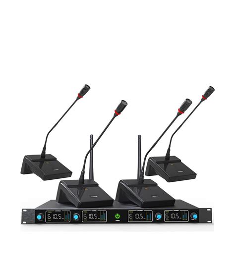 The gooseneck microphones are where the sound is actually captured, so their quality is paramount. These microphones usually feature a cardioid polar pattern, which means they primarily pick up sound from directly in front of them while rejecting noise from the sides and rear. This is crucial for minimizing background noise and feedback, especially in environments with multiple speakers. The flexible gooseneck design allows users to adjust the microphone’s position to suit their needs, ensuring optimal sound capture regardless of their height or posture. A mute button is commonly included on each microphone, giving speakers the ability to quickly silence themselves when needed. The microphones are typically powered by batteries, either AA or rechargeable, and they communicate wirelessly with the base unit via UHF frequencies. Durability is also a key consideration, as these microphones are likely to be handled frequently. High-quality materials and robust construction ensure they can withstand the rigors of daily use.