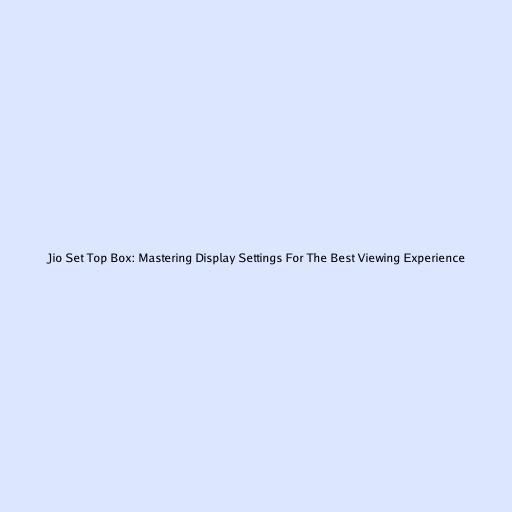 Jio Set Top Box: Optimizing Your Display Settings