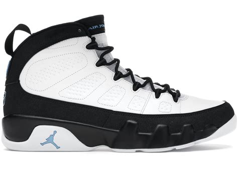 The design stays true to the original Jordan 9, but the University Blue color gives it a whole new dimension. This color isn’t just a random pick; it’s a nod to Michael Jordan’s alma mater, the University of North Carolina. It’s a shout-out to his roots, and a connection to the legacy he built. The midsole is typically white or a neutral color, which provides a clean contrast that really makes the University Blue stand out. The outsole features a unique design, with symbols and graphics that represent Jordan’s global impact. These details are more than just design elements; they are narratives. They tell a story about Jordan’s journey and his influence beyond the basketball court. The tongue of the shoe usually features the Jumpman logo, adding to the iconic look. The overall design is a perfect blend of heritage and contemporary style, making it a versatile shoe that can be dressed up or down. Whether you’re hitting the court, the streets, or just chilling with your friends, these sneakers will elevate your look. It’s a timeless design that never goes out of style. The attention to detail is evident in every stitch, every panel, and every graphic. It’s a shoe that demands respect, and will definitely earn you some style points. The Jordan 9 Retro ‘University Blue’ is more than just a shoe, it’s a piece of art, a symbol of excellence, and a testament to Michael Jordan’s enduring legacy.
