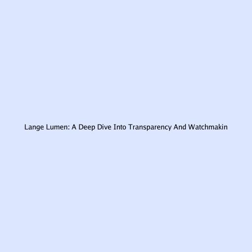 Lange Lumen: A Deep Dive into Transparency and Watchmaking