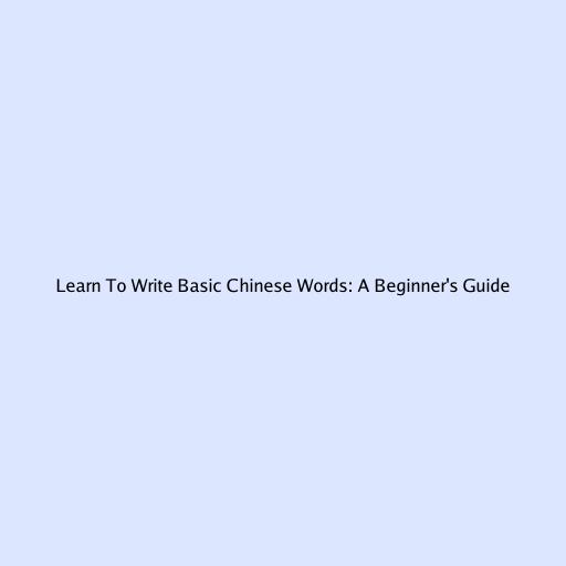 Learn To Write Basic Chinese Words: A Beginner's Guide
