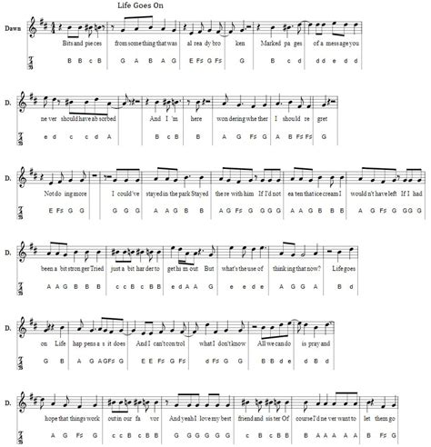 • Connecting Phrases: The beauty of “Life Goes On” is its structure. You’ll find repeating patterns, which makes it easier to learn. After the second phrase, you might see something like C, C, C, D, E, D, C . This brings us back to the tonic ©, creating a sense of resolution before the next section.