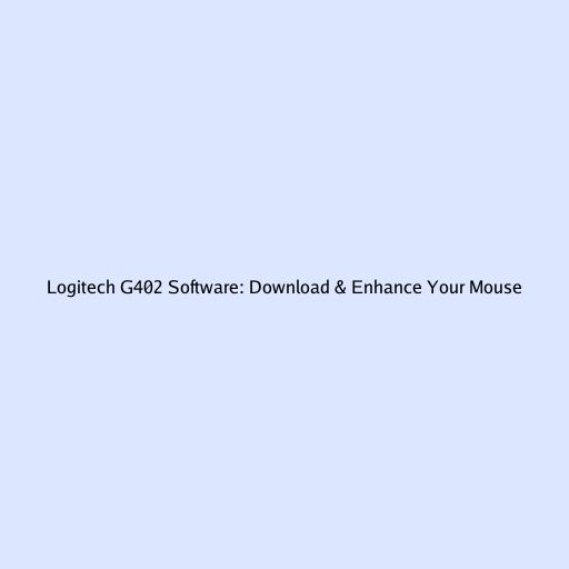 Logitech G402 Software: Download & Enhance Your Mouse
