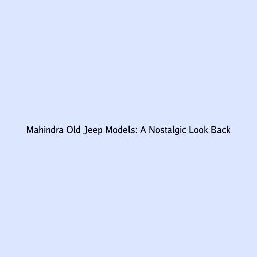 Mahindra Old Jeep Models: A Nostalgic Look Back