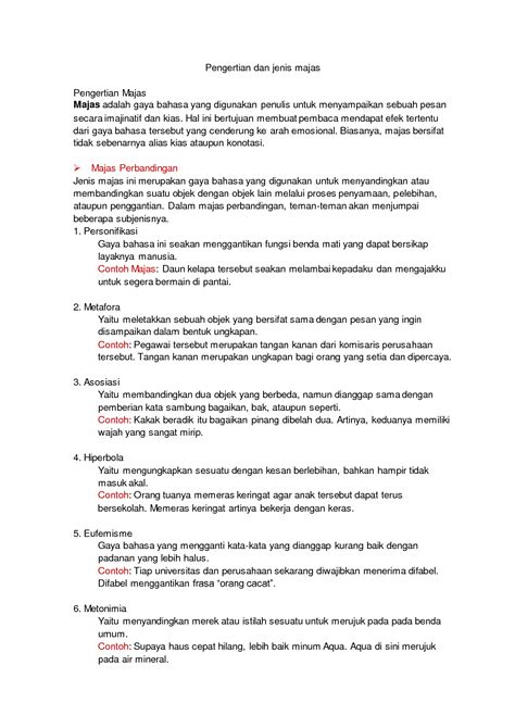 Oke, guys, sekarang kita masuk ke bagian yang seru: jenis-jenis majas . Ada banyak banget jenisnya, tapi tenang aja, kita bakal fokus ke yang paling sering nongol biar kalian gak pusing. Siap-siap mencatat ya!