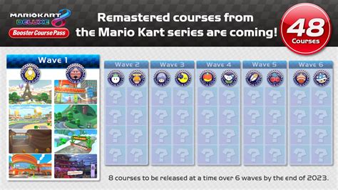 Nintendo really dropped a bombshell when they announced the Booster Course Pass for Mario Kart 8 Deluxe. It wasn’t just a few extra tracks; it was a commitment to adding 48 remastered courses over time, effectively doubling the game’s track count! Guys, that’s insane! The first wave hit in March 2022, and it set the tone for what was to come. We got some absolute bangers right out of the gate, like the return of Tokyo Blur from Mario Kart Tour and the surprisingly chilly Shroom Ridge. Seeing these classic tracks get a fresh coat of paint and updated gameplay mechanics was already a massive win. But it wasn’t just about nostalgia; Nintendo was also digging deep into the Mario Kart history books, pulling tracks from games like Mario Kart DS, Mario Kart Wii, and even the mobile Mario Kart Tour. The 2022 rollout was strategic, aiming to keep players engaged with regular content drops throughout the year. Each wave felt like a mini-event, sparking discussions online about which tracks would appear next and how they’d translate into Deluxe. The anticipation was real, and honestly, it paid off. The quality of the remastered tracks was top-notch, breathing new life into beloved courses and introducing them to a new generation of players. This initial phase of the Booster Course Pass proved that Nintendo was serious about giving Mario Kart 8 Deluxe a massive, long-term boost in content, making it the ultimate kart racing package. It wasn’t just DLC; it felt like a celebration of the entire Mario Kart series, all bundled into one incredible expansion.