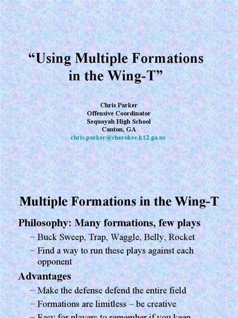 So, why should your team consider running the Wing T football formation ? The advantages are numerous, guys, and they can lead to consistent success on the offensive side of the ball. One of the biggest benefits is deception . As we’ve discussed, the Wing T is built on misdirection, fakes, and eye candy that keeps defenses constantly guessing. This confusion leads to missed assignments, blown coverages, and ultimately, big plays. By forcing linebackers and defensive backs to hesitate or take wrong steps, you create openings for your runners. Another major advantage is wearing down the defense . The Wing T is a run-heavy offense. It’s about establishing a physical presence at the line of scrimmage and pounding the ball. This relentless attack can take a physical and mental toll on the opposing defense over the course of a game. By the fourth quarter, those defensive linemen and linebackers are going to feel it, and your offensive line will be able to continue opening holes. It also doesn’t require elite speed or size across the board. While playmakers are always beneficial, the Wing T system is designed to make ordinary athletes look like stars through execution and scheme. A disciplined offensive line, a smart quarterback, and tough running backs can be incredibly effective even without a Heisman Trophy winner at every position. Furthermore, the Wing T offers great flexibility and adaptability . While it’s known for its running game, it can effectively incorporate play-action passes and even some traditional passing concepts once a defense is respecting the run. This versatility makes it difficult for opponents to prepare for every aspect of your offense. Finally, the Wing T fosters teamwork and discipline . Every player has a specific role and assignment. Success hinges on everyone doing their job correctly, which builds camaraderie and a strong team identity. This emphasis on execution and fundamentals can translate into success in all phases of the game.